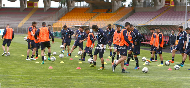 Il lavoro della squadra, in vista della gara di domenica ad Alessandria, è proseguito con una seduta svolta nel pomeriggio al Via del Mare. Il tecnico Rizzo ha impiegnato i giocatori in un lavoro tattico, al quale non ha partecipato Drudi, che ha svolto un allenamento differenziato. Domani mattina la squadra effettuerà la rifinitura, a porte chiuse, al Via del Mare, prima del trasferimento in Piemonte.