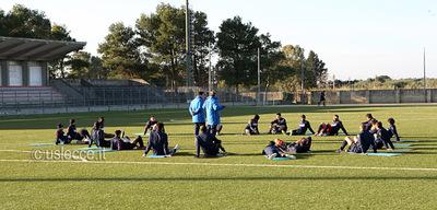 Altra seduta mattutina per la squadra, che si è allenata sul sintetico di Calimera. Hanno lavorato a parte Zappacosta e Ferrario, mentre Foti, come da programma stabilito con il prof Fornari, ha effettuata una seduta di idrochinesi terapia e successiva riprogrammazione posturale presso lo Sport Medicine Palaia di Squinzano. Domani mattina, alle ore 10, la rifinitura a Calimera.