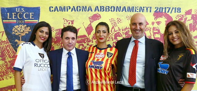 Nel corso della presentazione della Campagna Abbonamenti, sono state svelate le nuove divise da gioco. Oltre alla prima maglia, rigorosamente giallorossa, la seconda bianca e la terza nera. L’amministratore delegato Alessandro Adamo descrivendo la prima maglia ha ricordato come “le strisce giallorosse più ristrette richiamino a degli anni fortunati, con il Lecce nel massimo campionato. Sulle divise da gioco compariranno gli sponsor Moby, Maffei e Banca Popolare Pugliese. Per quanto riguarda, invece il Settore Giovanile, Ottica Rucco è sempre al nostri fianco come Main Sponsor.”