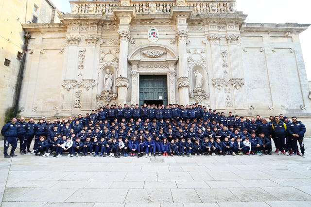 Tutti i ragazzi e le ragazze del settore giovanile dell'U.S. Lecce, i giovani della scuola calcio giallorossa accompagnati dall'intero staff tecnico e dirigenziale questo pomeriggio si sono ritrovati in Piazza Duomo per partecipare al tradizionale Precetto pasquale. La Santa Messa é stata celebrata da S.E. Rev.ma Mons. Michele Seccia , Arcivescovo Metropolita di Lecce.