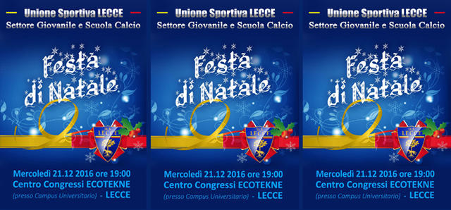 Si svolgerà mercoledì 21 dicembre alle ore 19.00, presso il Centro Congressi del Complesso Ecotekne dell'Università del Salento, il tradizionale Scambio d'Auguri Natalizi. Saranno presenti, oltre la dirigenza, tutte le squadre del vivaio giallorosso e i giovani calciatori della scuola calcio, accompagnati dalle loro famiglie.